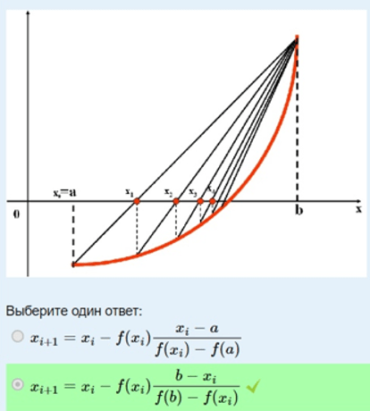 Какая из формул соответствует методу хорд решения нелинейных уравнений?